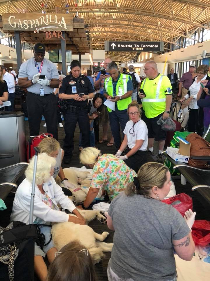 While being held at the airport, Eleanor Rigby, a Labrador service dog,